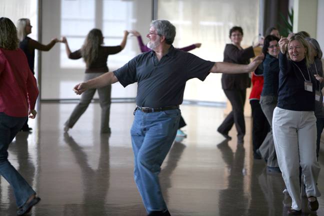 David learning renaissance dance in class at