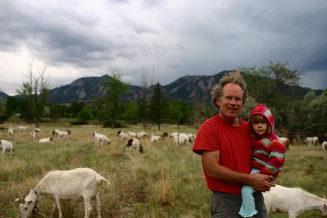 Jim Cohn with daughter Isabella and goats